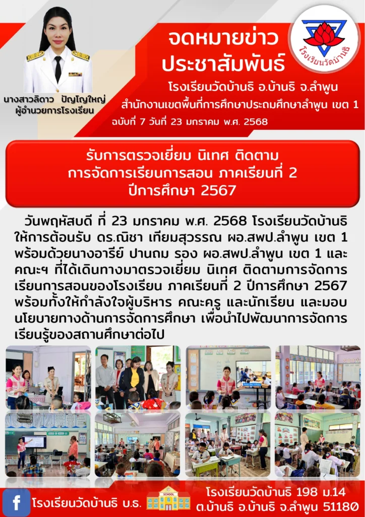 ฉบับที่ 7 รับการตรวจเยี่ยม นิเทศ ติดตาม การจัดการเรียนการสอน ภาคเรียนที่ 2 ปีการศึกษา 2567